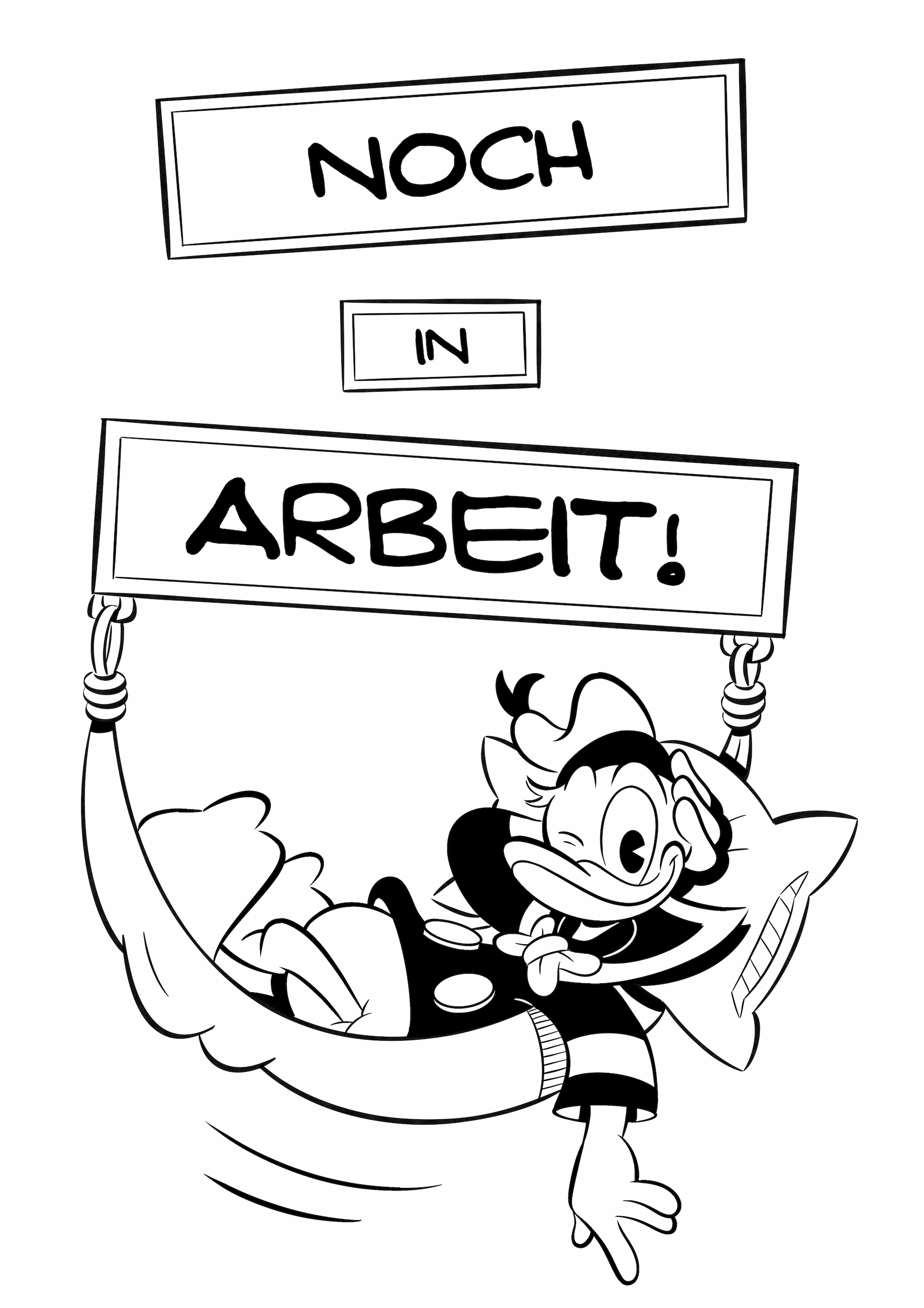 Hintergrund: Ich erinnere mich an einen Kommentar von Don Rosa: Er überlegte, seine erste Geschichte neu zu zeichnen. Er wollte eine Seite ergänzen, in der Mac Moneysac Donald und den Neffen die Ursachen für seinen Hass auf Dagobert erzählt. Die Ursache wurde dann ja in einem Kapitel von „Sein Leben Seine Milliarden“ erzählt. Eigentlich ist das eine nette Idee für Don Rosas Rente, doch er will ja nicht mehr zeichnen. Also mache ich das jetzt. Außerdem kann ich dann die Positionen der Enten verändern, damit sie nicht mehr wie Kopien von Barks aussehen.