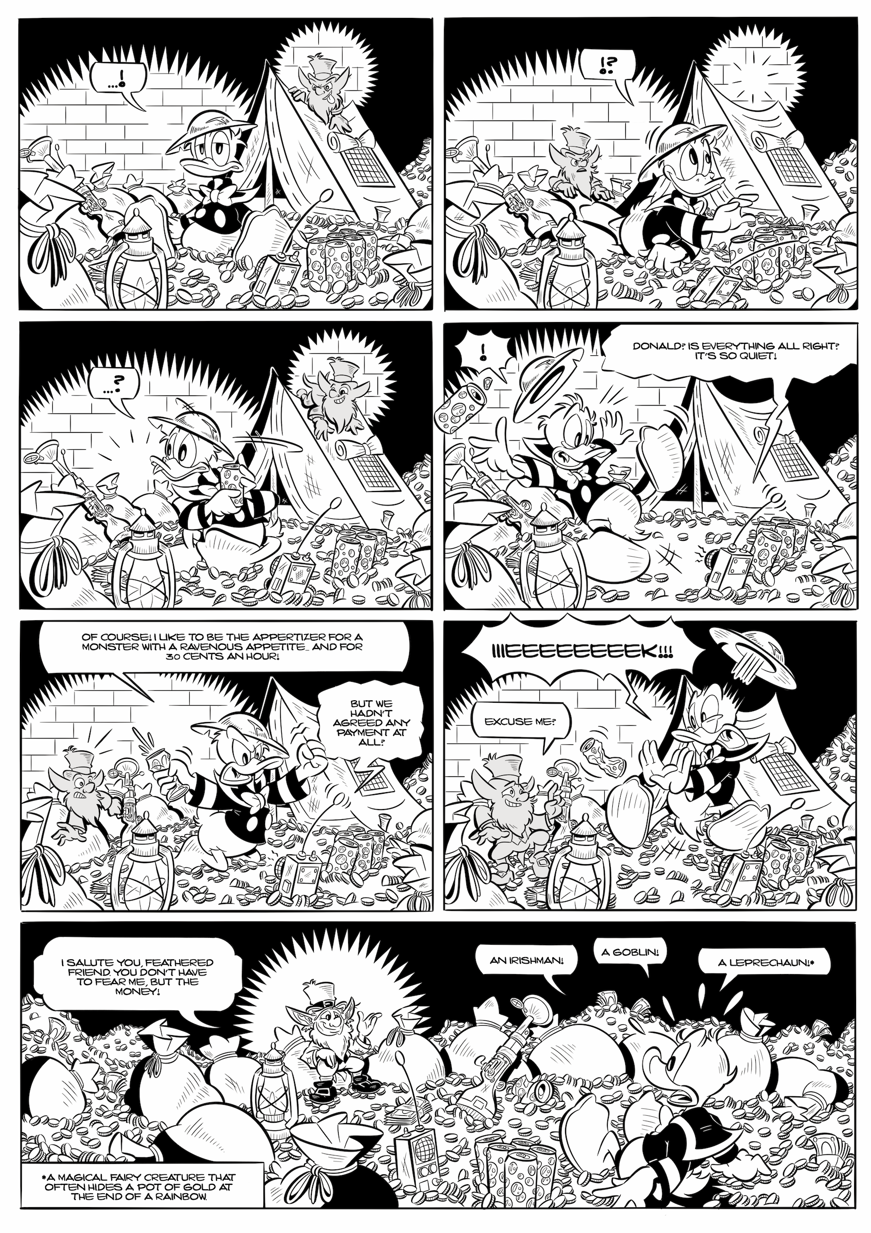Content: Scrooge discovers a bitten coin in the money bin. Together with Donald, he wants to find out the cause and meets an unexpected visitor.